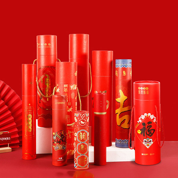 2024春聯(lián)筒批發(fā)對聯(lián)紙筒定制掛歷圓形筒包裝龍年對聯(lián)帶繩紙罐